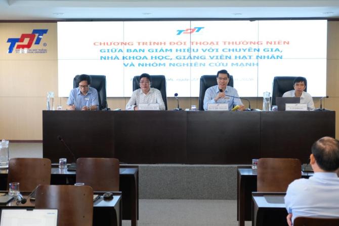 Quí anh, chị phóng viên trao đổi với Lãnh đạo Nhà trường tại Lễ thông tin